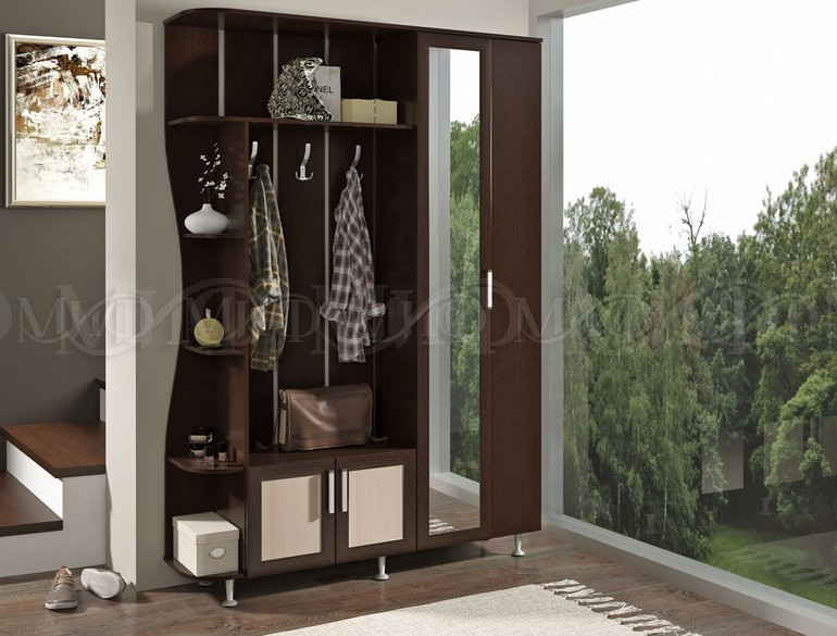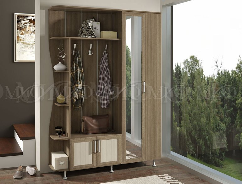 Модульная прихожая в коридор для малогабаритных квартир. Имеет компактные размеры и приятный дизайн. Зеркальная створка зрительно сделает шире узкую прихожую.